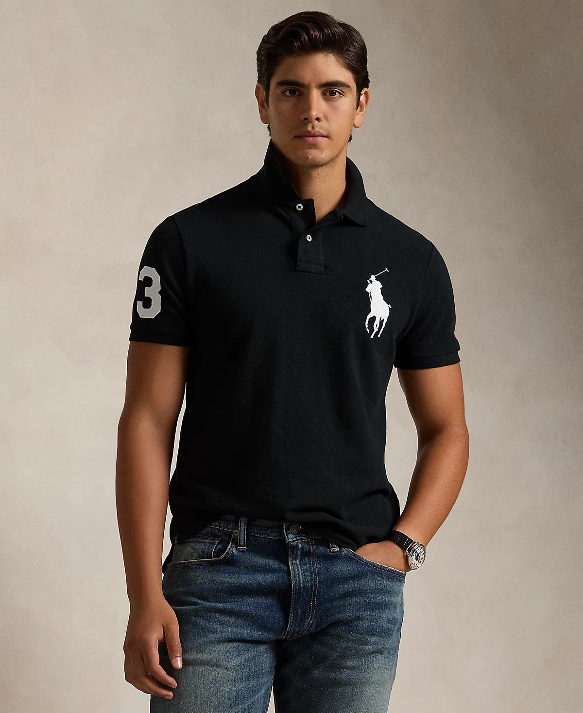 From its meticulous construction (the signature embroidered Big Pony alone requires a total of 10,800 individual stitches to produce) to its cotton mesh fabric, which only gets better with wear, Ralph Lauren’s Polo shirt has been an icon of American style since 1972. This trim version from Polo Ralph Lauren is finished with a twill “3” appliqué, which nods to the number typically worn by a polo team’s strongest player.